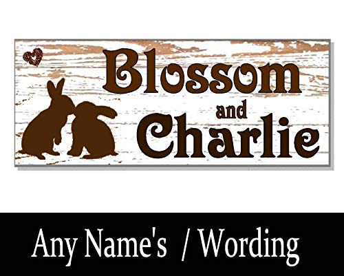 Slobyy Shabby White Wash Personalized Rabbit Name Sign Plaque Hutch Run Cage Door Gift Outdoor Love Bunny Garden Wooden Plaque 11"X4"