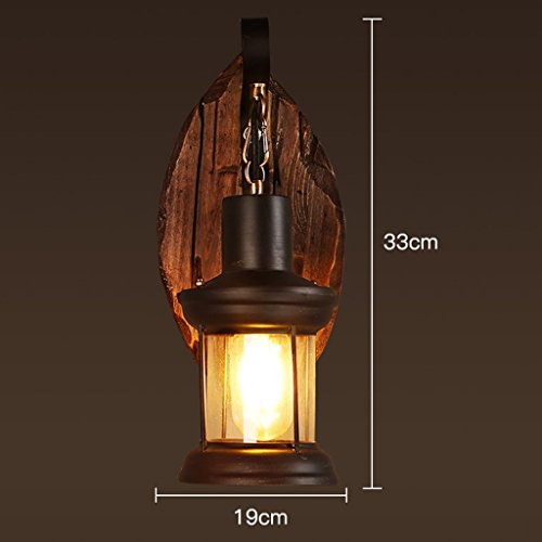 CQ Retro Iron Art Solid Wood Wall Lamp Nostalgic Glass Coffee Shop Bedroom Bedside Art Creative Personality Wall Lamp