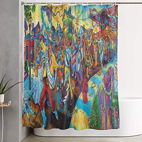 Mardi Gras Peple Instrument Party Music Shower Curtain 3D Printed Non-Fading Bathing Curtain Long Lasting Waterproof Home Decor Shower Curtain Set with 12 Hooks