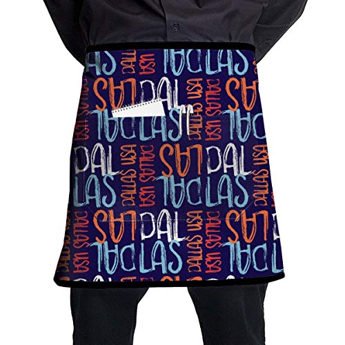 Unique Dallas USA Pattern Chef Aprons Customized Half Body Waist Aprons Sewing Pocket for Pub