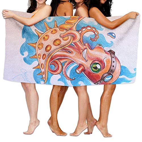 Cute Cartoon Octopus Beach Towels Polyester Quick Dry Soft Bath Sheets,Summer Luxury Travel Large Bath Towels for Yoga Mat Beach Cover Blanket 31.5" X 51.2"