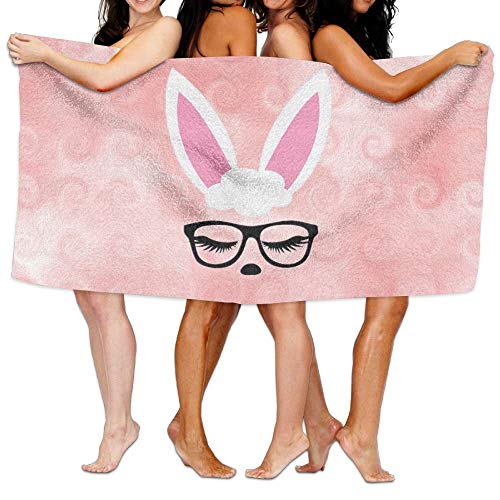 Beach Towel Rabbit with Sunglass 80" X 130" Soft Lightweight Absorbent for Bath Swimming Pool Yoga Pilates Picnic Blanket Towels
