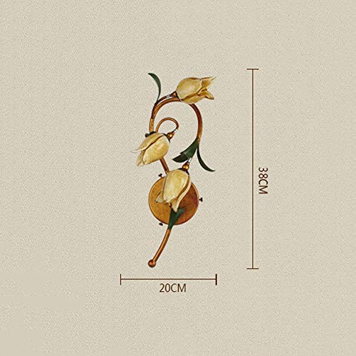 GLBS G4 Iron Glass Wall Light Warm Bedside Flowers Wall Lamp Vintage Pastoral Sconce Indoor Bedroom Living Room Lighting Fixture Mirror Three Light Source Household Illumination Decoration