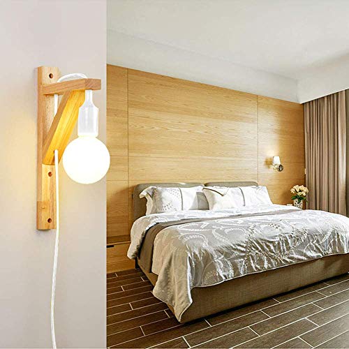 Beautiful Home Decoration Lamps Wood Wall Lamp, Vintage E27 Interior Wall Light, White Power Cord with Switch Sconce Bedside Lamp for Bedroom Dormitory Dining Room Bedroom Bar Cafe Loft