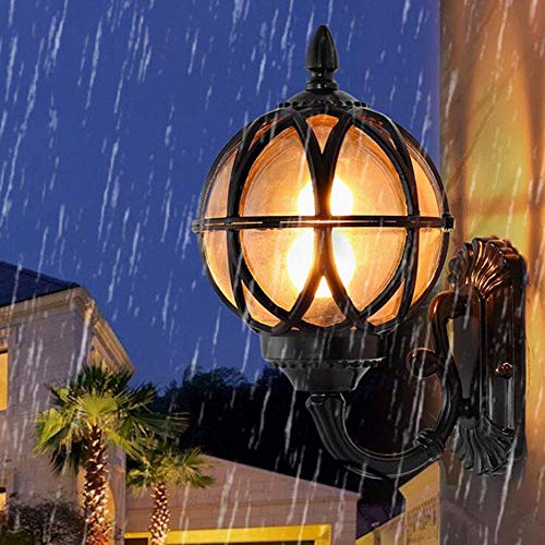 Beautiful Home Decoration Lamps E27 Wall Lamp with Glass Shade Outdoor Lights Ball Lantern Design Garden Lamps Retro Outside Wall Light Balcony Hallway Gear Entrance Lighting (21.5 * 24.5 * 38CM)