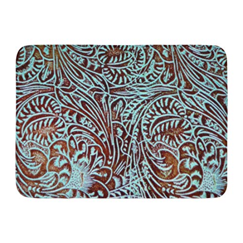 Jeepooff Bath Mat Country Toolin in Teal Brown Western Rustic Tooled Cowboy Bathroom Decor Rug