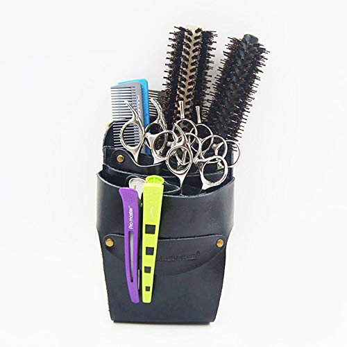 Hair Cutting Tool Professional Hairdresser Leather Waist Belt Multiple Pocket Hair Scissors Shears Pouch Hairdressing Tool (Color : Black)
