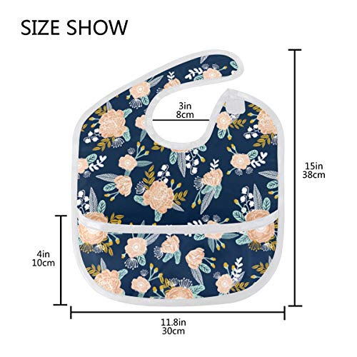 Navy Blue Florals Flowers Nursery Flowers Floral Painted Nursery F Infant Bibs Waterproof Baby Bib Roll Up Bib,Saliva Towel Antifouling Bibs for Toddler Bibs for Drooling and Teething