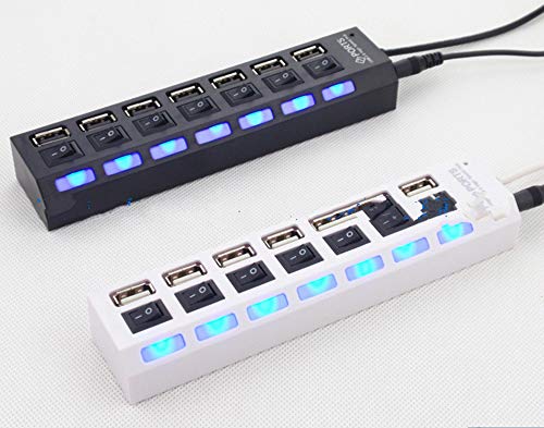 7 Ports USB Hub Hot 7-Port hub hub USB2.0 with Independent Switch HUB7 bit Expansion Splitter 7-Hole USBhub,White Polykor