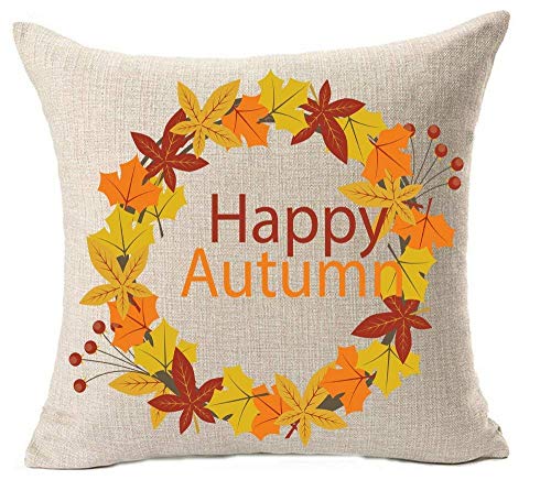 Quote Happy Fall Y'all Fall Leaves Wreath Happy Autumn Cotton Linen Throw Pillow Case Cushion Square Cover Home Sofa Decorative 18 x 18 inch (a) 45cm