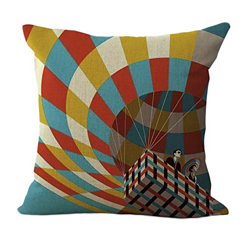 Hot-air Balloon Pattern Cushion Cover Cotton Linen Pillowslip Square Decorative Throw Pillow Case 18 X 18'' 45cm
