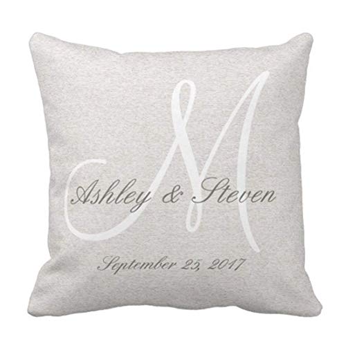 Tan Initials Rustic Linen with White Monogram Letters Decorative Pillow Case Home Decor Square 18 x 18 Inch 45cm