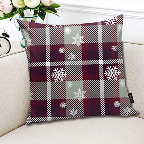 Snowflake Plaid Throw Pillow Covers Cushion Case Square Cushion Cover Pillowcase for Sofa Couch Bed Cotton for Home Decor 18 x 18 Inches