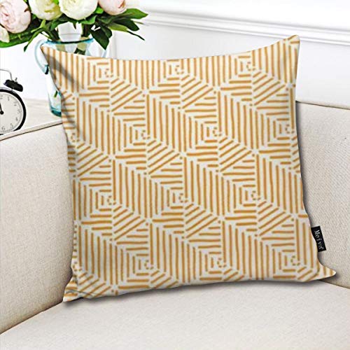 Geo Triangles Orange Stripe Art Throw Pillow Covers Cushion Case Square Cushion Cover Pillowcase for Sofa Couch Bed Cotton for Home Decor 18 x 18 Inches