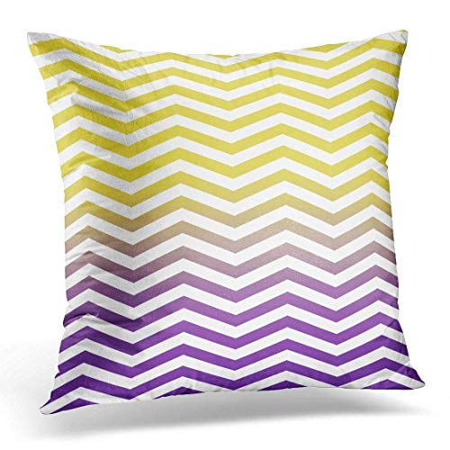 Ombre Yellow Purple Watercolor Chevron Modern Painting Decorative Pillow Case Home Decor Square 18 x 18 Inch 45cm