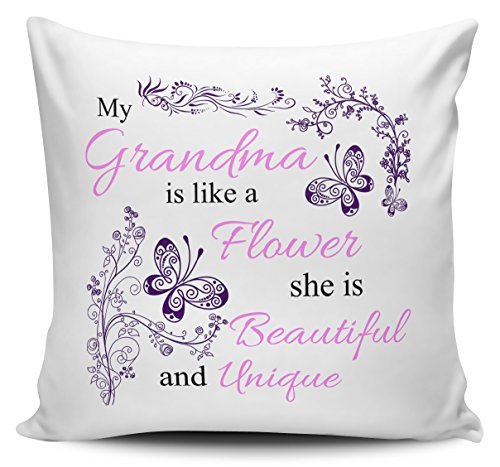 Pillow Covers Decorative My Grandma is Like A Flower Novelty Cushion Cover Canvas Pillow Case 16X16 Inches