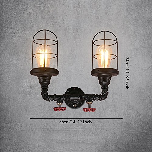 Wsxxn American Retro Wrought Iron Wall Lamp Creative Double Head Industrial Style Wall Lantern Bar Cafe Restaurant Water Pipe Bracket Light