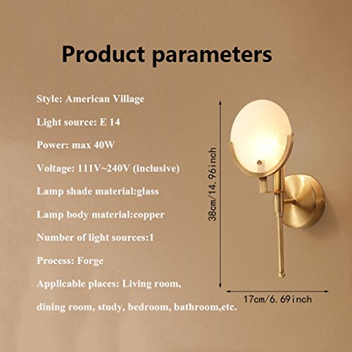 Wsxxn E14 Full Copper Glass Lamp Single Head Wall Lamp Creative Simple Round Lampshade Indoor Lighting Fixture Aisle Corridor Lamp Stairs Porch Wall Light