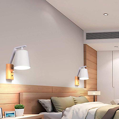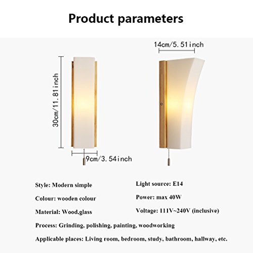 Wsxxn Japanese-Style Solid Wood with Pull Switch Wall Lamp Creative Minimalist Living Room Bedroom Balcony Glass Wall Light (E14)