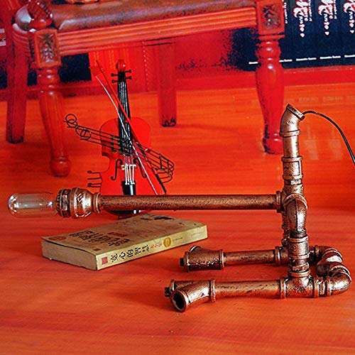 Wsxxn Water Pipe Table Lamp, Steampunk Retro Industrial Edison Bulb Desk Light Study Bar Cafe Personality Creative Wrought Iron Pipe Lamp Bedroom Lamp Desktop Lighting Fixture