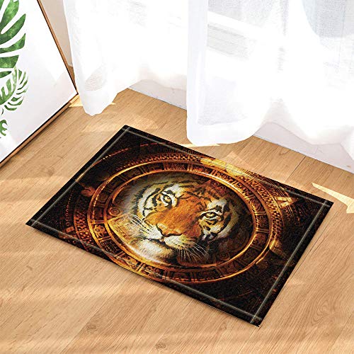 Black Background Yellow White Tiger Head Bathroom mat Right Angle Non-Slip Door pad Children 40X60CM