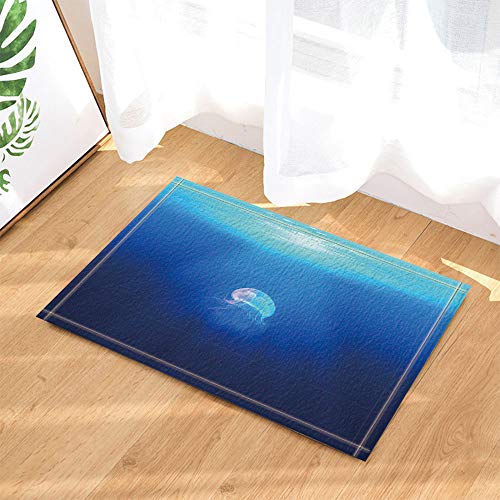 Blue Sea Bottom White Ray Blue Purple JellyfishRight Angle Bathroom mat Gothic Door mat Children 40X60CM