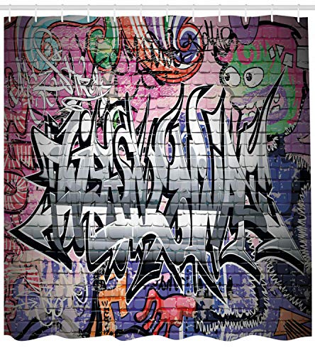 Urban Shower Curtain Graffiti Grunge Wall Art Print for Bathroom Shower Curtain Durable Fabric Accessories Creative with 12 Hooks 180X180CM