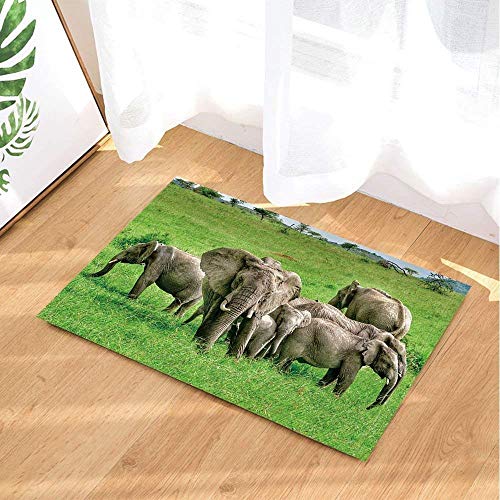 Green Prairie Grey Multi-Headed ElephantRight Angle Bathroom mat Gothic Door mat Children 40X60CM