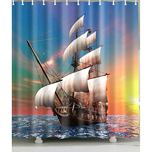 Sailing Shower Curtain Durable Fabric Mildew Bathroom Accessories Creative with 12 Hooks 180X180CM