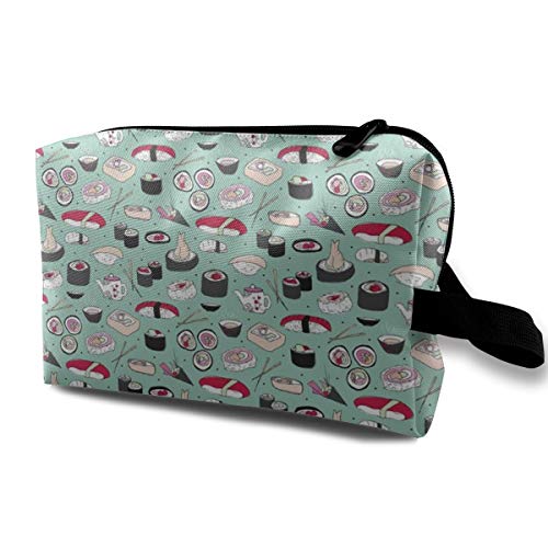 Violet Japanese Cherry Blossom Doodle Sushi Dinner Delicious Food Pattern Travel Makeup Cute Cosmetic Case Organizer Portable Storage Bag for Women