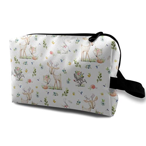 Woodland Friends Deer Fox Raccoon Bunny Flowers Blanket Sheets Bedding Travel Makeup Cute Cosmetic Case Organizer Portable Storage Bag for Women