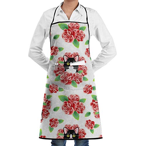 Tuxedo Cat and Roses Adjustable Bib Apron with Pockets Cooking Kitchen Aprons for Cooking Baking Kitchen Restaurant Crafting20.47 X 28.34 inch