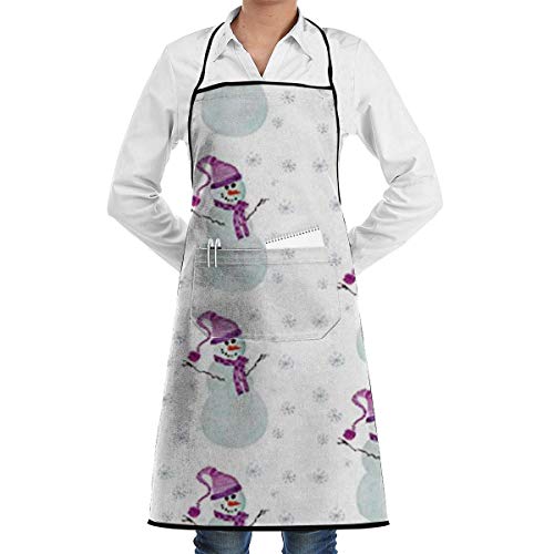 Watercolor Snowman Adjustable Bib Apron with Pockets for Women and Men20.47 X 28.34 inch
