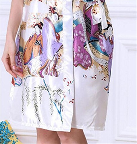 Fasion Women Summer Elegant Printed Dressing Gowns Medium Sleeves Bathrobe Nightgown Pajamas Polykor (Color : White, Size : L)