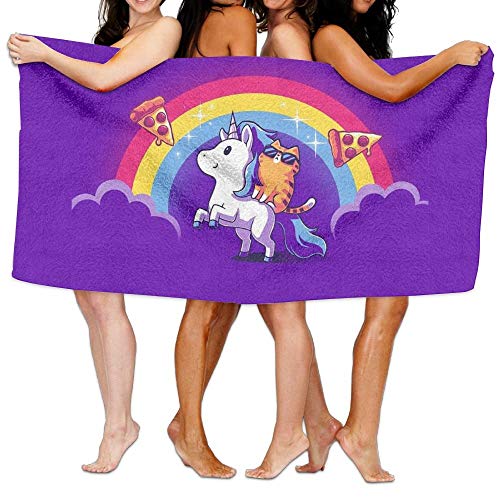 Beach Towel Unicorn and Cat are Friends 80" X 130" Soft Lightweight Absorbent for Bath Swimming Pool Yoga Pilates Picnic Blanket Towels