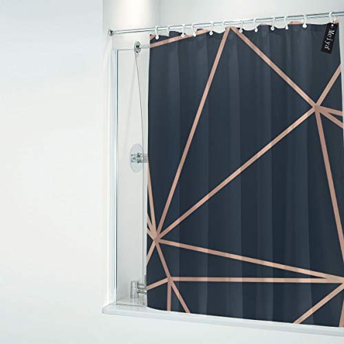 Bathroom Shower Curtain Golden Lines Triangle On Dark Print Decorative Bathroom Curtain with 12 Hooks 72"x72"