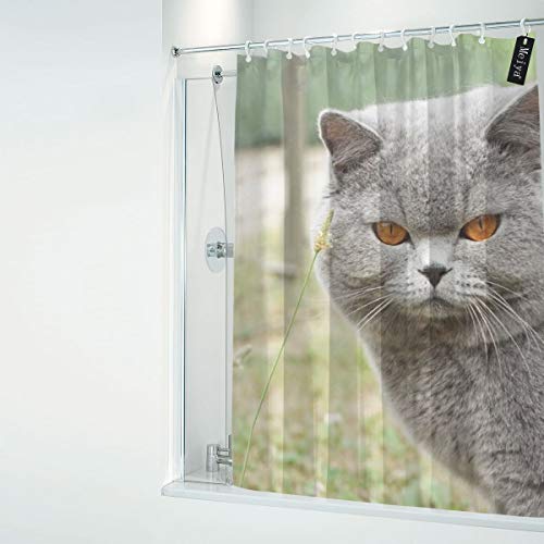 Bathroom Shower Curtain Angry Cat, Muzzle, British Shorthair, Pet Print Decorative Bathroom Curtain with 12 Hooks 72"x72"