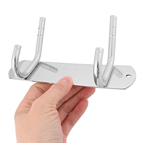 uxcell Stainless Steel Home 2 Hooks Wall Mounted Handbag Hat Clothes Rack Silver Tone