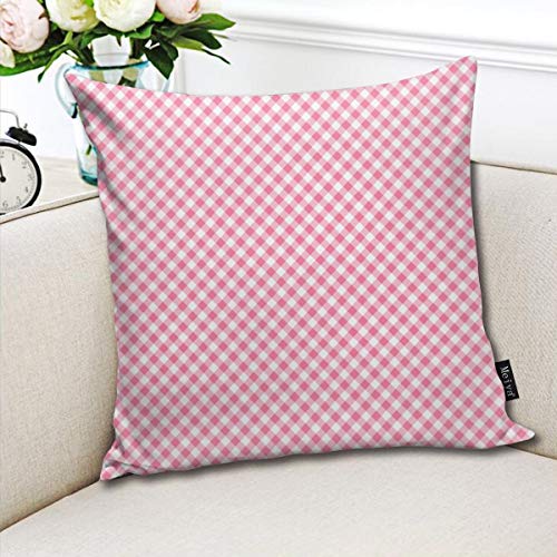 Kawaii Cookout Pink Gingham Throw Pillow Covers Cushion Case Square Cushion Cover Pillowcase for Sofa Couch Bed Cotton for Home Decor 18 x 18 Inches