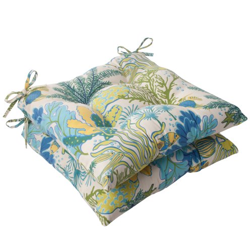 Pillow Perfect Indoor/Outdoor Splish Splash Tufted Seat Cushion, Blue, Set of 2