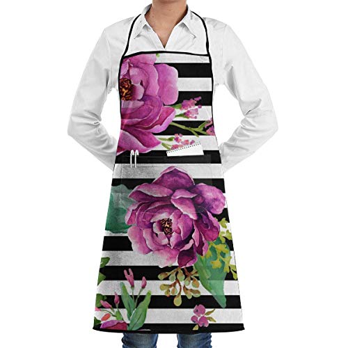 Pink Sunrise - Black and White Stripes Chef Apron Funny Heavy-Duty Aprons for Grilling, BBQ, Baking or Cooking20.47 X 28.34 inch