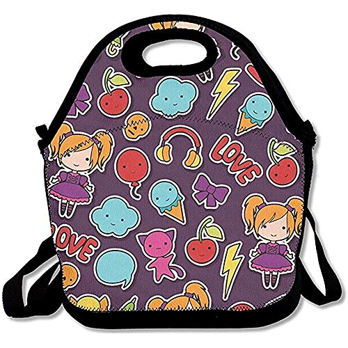Kawaii Child Pattern Cute Doodles Insulated Lunch Bag - Neoprene Lunch Bag - Large Reusable Lunch Tote Bags Women, Teens, Girls, Kids, Baby, Adults Portable Carry