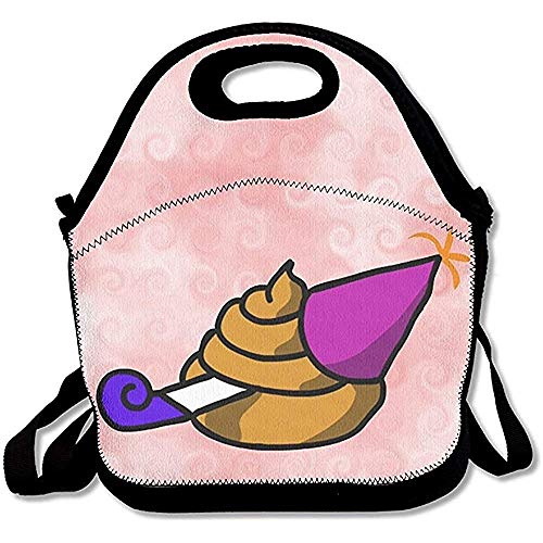 Party Pooper Insulated Lunch Bag Zipper,Carry Handle Shoulder Strap Adults Kids Black