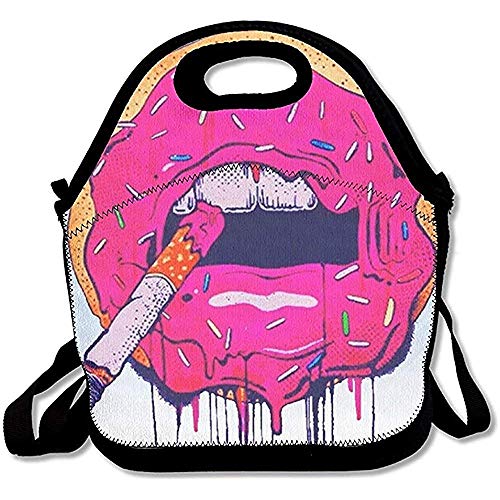 Smoking Donut Insulated Lunch Bag with Zipper,Carry Handle and Shoulder Strap for Adults Or Kids Black
