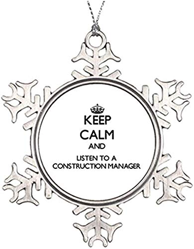 3" Ornament, Metal Snowflake Ornament, Personalised Christmas Tree Decoration Keep Calm and Listen to a Construction Manager Christmas Balls Snowflake Ornaments Keepsake Gift
