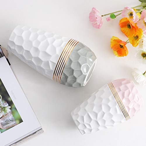Ceramic Vase Gold Line Modern Minimalist Art Decoration Home Decor Living Room Office Christmas Vase Decoration Vase Flower Bottle (Color : Pink, Size : Large)