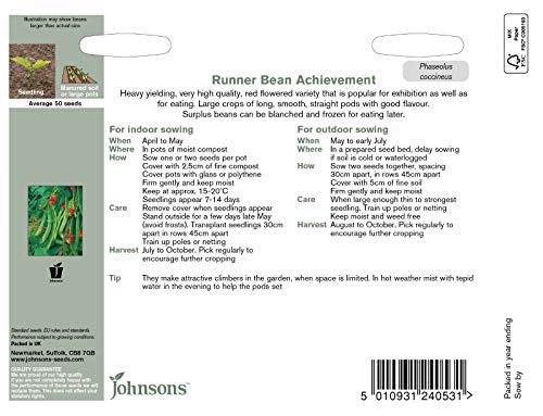 Seeds Package: 2 : Johnsons Seeds Runner Bean Acheivement Seeds - Ideal for Exhibition!