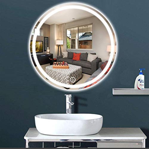 Round Waterproof Illuminated LED Bathroom Mirror, Wall Makeup Mirrors with White Light Sensor Touch Control and Demister Pad (Color : Without Frame, Size : 80cm)