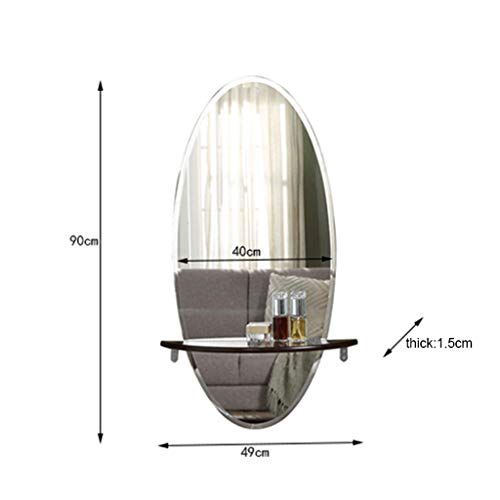 Wall-Mounted Mirrors Wall Mirror Full-Length Mirror Storage Mirror Makeup Mirror Wooden countertop Mirror Dressing Mirror with Shelf (Color : Silver, Size : 49 * 90 * 0.5cm)