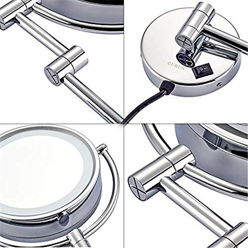 8 Inches LED Lights Vanity Cosmetic Magnifying Makeup Mirrors Wall Bathroom Magnification Shaving Mirror with Electrical Plug Chrome (Size : 10X)
